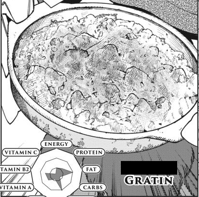 Potatoes are steamed. Hmm. I dont know if they are supposed to be pre-cooked, they are quite a lot fluffier and starchier than I expected. Makes it hard to slice them actually. Still, that wont matter because the gratin looks all lumpy in the manga.