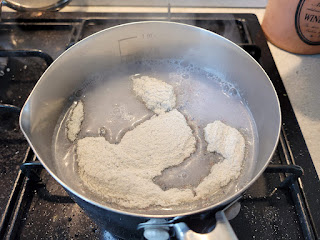 We just gotta stir and stir until all the lumps are dissolved, which is hard to see because its opaque.